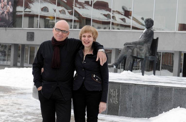 Vytautas ir Velta Anužiai, puikiai žinomi aktoriai ir teatro pedagogai, pastaruoju metu dažni svečiai Aukštaitijos sostinėje: jų vadovaujami studentai vieną po kitos stato pjeses Juozo Miltinio dramos teatre. U. Mikaliūno nuotr.