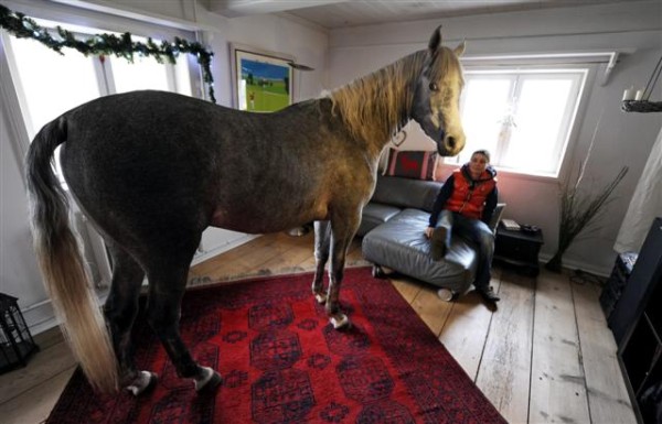 Vokietijos Flensburgo mieste arklys savo šeimininkę reguliariai aplanko namuose. Taip jis elgiasi nuo tada, kai moteris gruodį trejų metų arklį per uragano „Ksaveras“ siautėjimą parsivedė į namą.