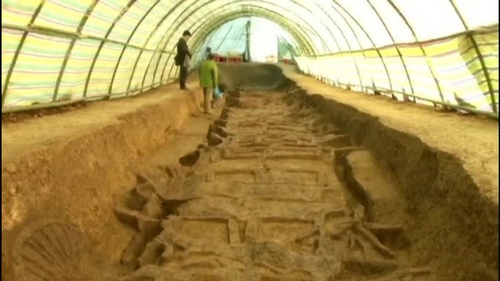 Kinijos archeologai šalies centrinėje Hubėjaus provincijoje atkasė mažiausiai 28 karietų liekanas ir 49 porų žirgų griaučius. Atradimas padarytas kasinėjant senovinę kapavietę.
