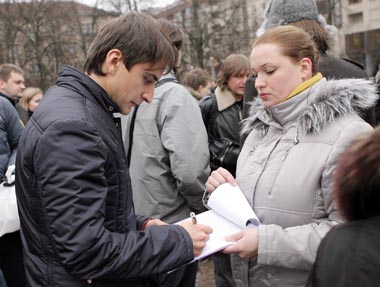 Nuotr. Alanas Chošnau pasirašo kreipimąsį į
