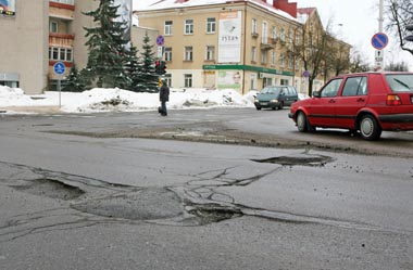 Atėjus kalendoriniam pavasariui jau po pirmojo atlydžio dėl temperatūrų kaitos, sniego, vandens, fizinio krūvio bei kitokio aplinkos poveikio miesto gatvėse „išlindo“ duobės.