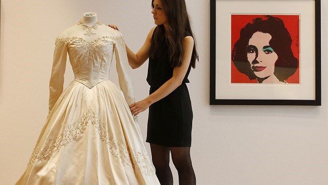 Suknelė, kurią Elizabet Teilor vilkėjo 1950 metais tuokdamasi su viešbučių tinklo valdytoju Konradu Hiltonu, trečiadienį aukcione Londone parduota už 121 875 svarus (143 569 eurus).