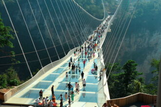 Ilgiausias pasaulyje stiklo tiltas, kabantis virš vaizdingo tarpeklio Kinijoje, buvo uždarytas…