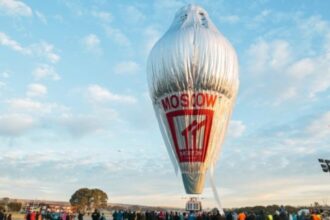 Rusas oreivis Fiodoras Koniuchovas šeštadienį pasiekė naują nepertraukiamo skrydžio oro balionu aplink…
