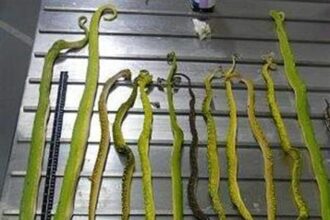 Australijos muitininkai, peršvietę įtartiną paketą, jame aptiko 13 gyvų gyvačių. Didžiausios jų…