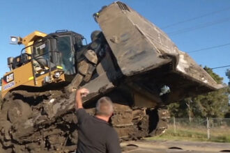 Australijoje vyras pavogė buldozerį, o paskui juo sutraiškė tris automobilius ir nugriovė…