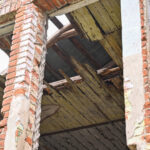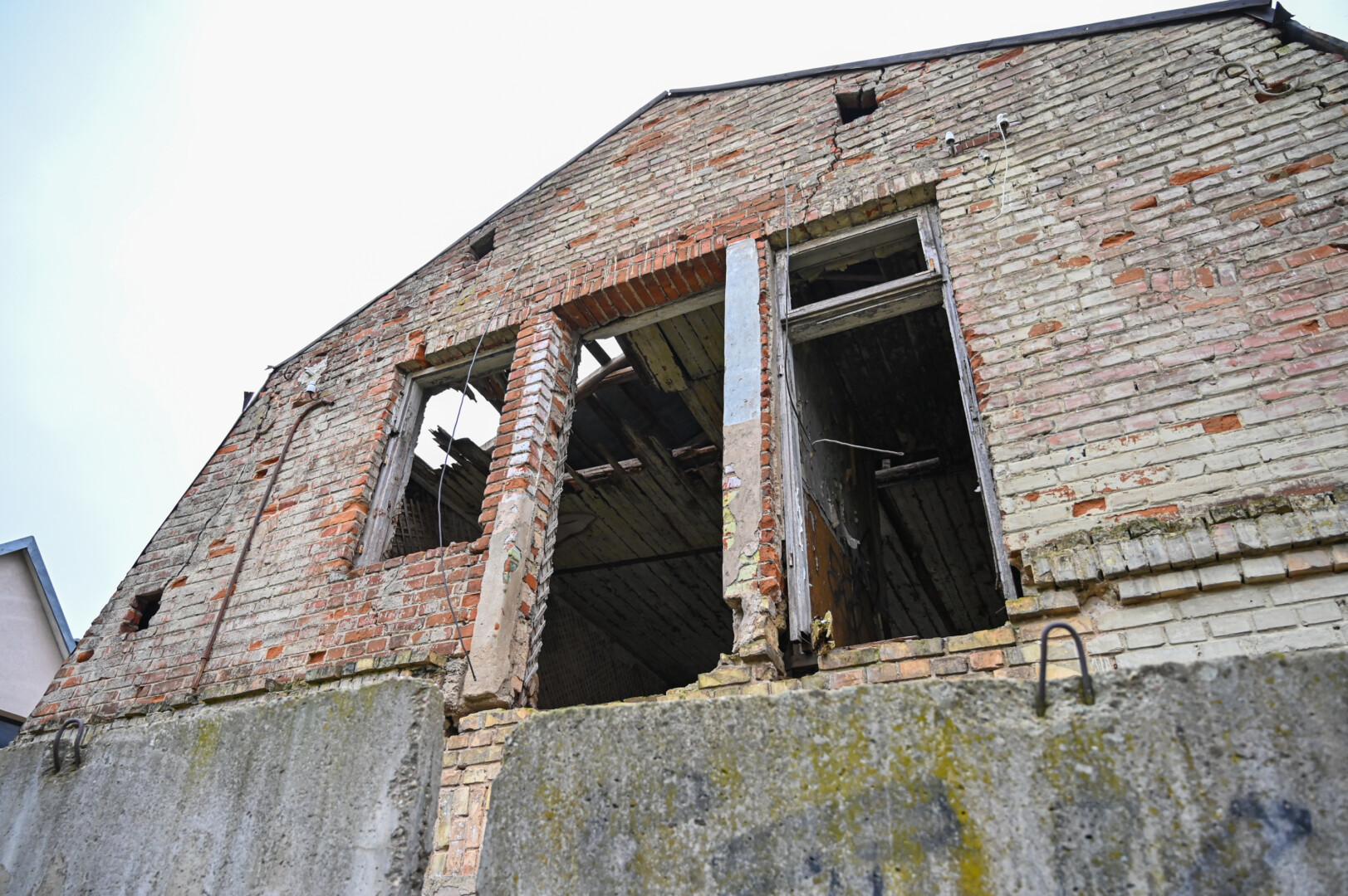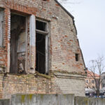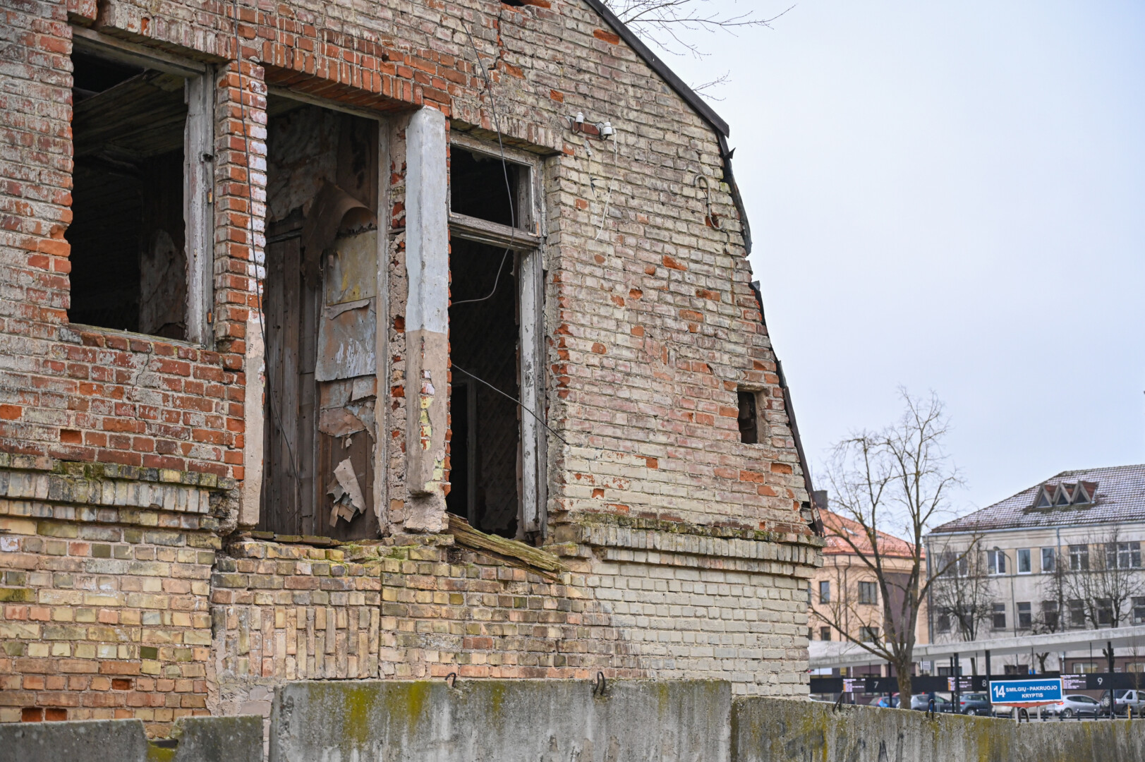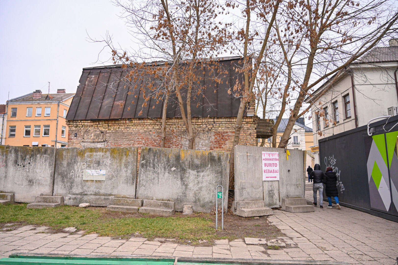 Daugybę metų šiame pastate glausdavosi benamiai, dabar jį juosia grafičiais apipiešta betoninių blokų tvora, langai užmūryti.