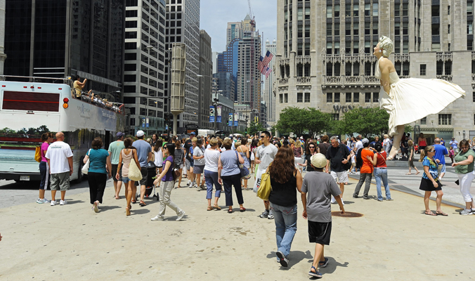 Čikagoje, Mičigano aveniu, iškilo beveik 8 metrų aukščio ir daugiau kaip 15 tonų svorio legendinės Holivudo aktorės Merlin Monro skulptūra.