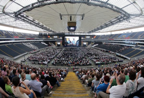 Vokietijos Frankfurto miesto arenoje šeštadienio vakarą pasiektas naujas rekordas – 7 548 muzikantai grojo didžiausiame pasaulyje orkestre.