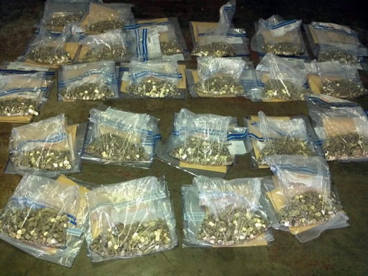 Monetos rastos trijuose ūkiuose Enfilde, Hartfordšyre ir Esekse bei dviejuose automobiliuose Esekso regione. Policija spėja, kad padirbtų pinigų jau yra rinkoje. Kur monetos buvo nukaltos, pareigūnai kol kas nenustatė.