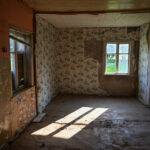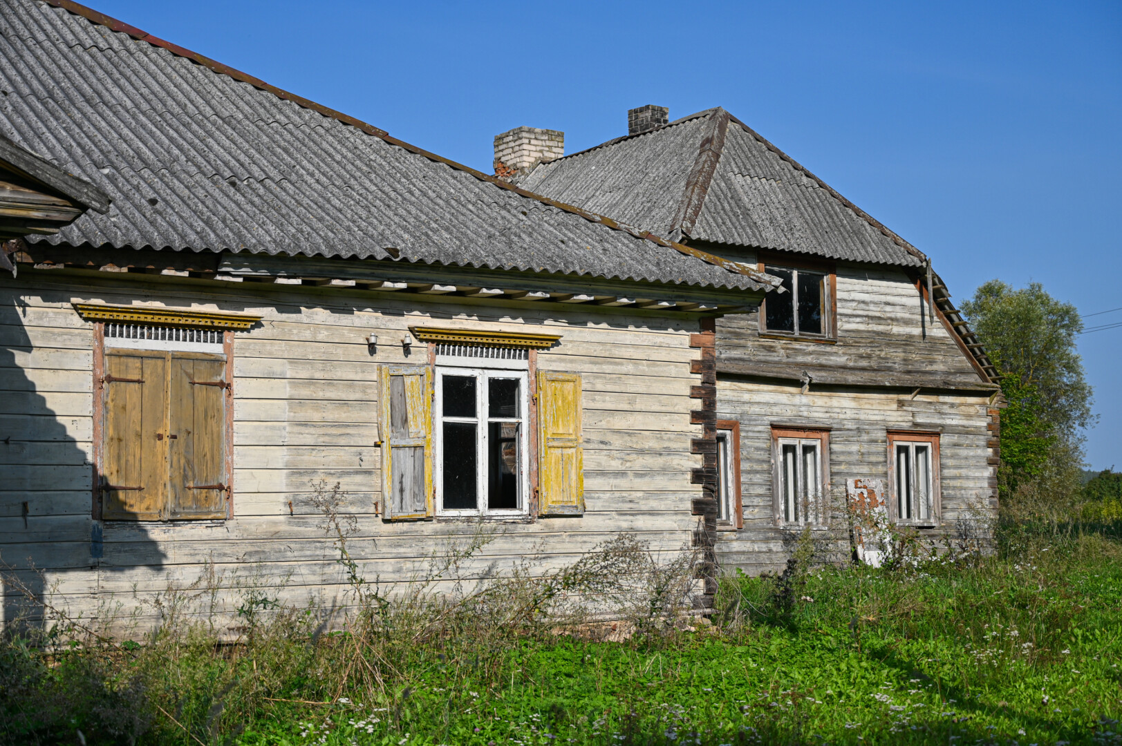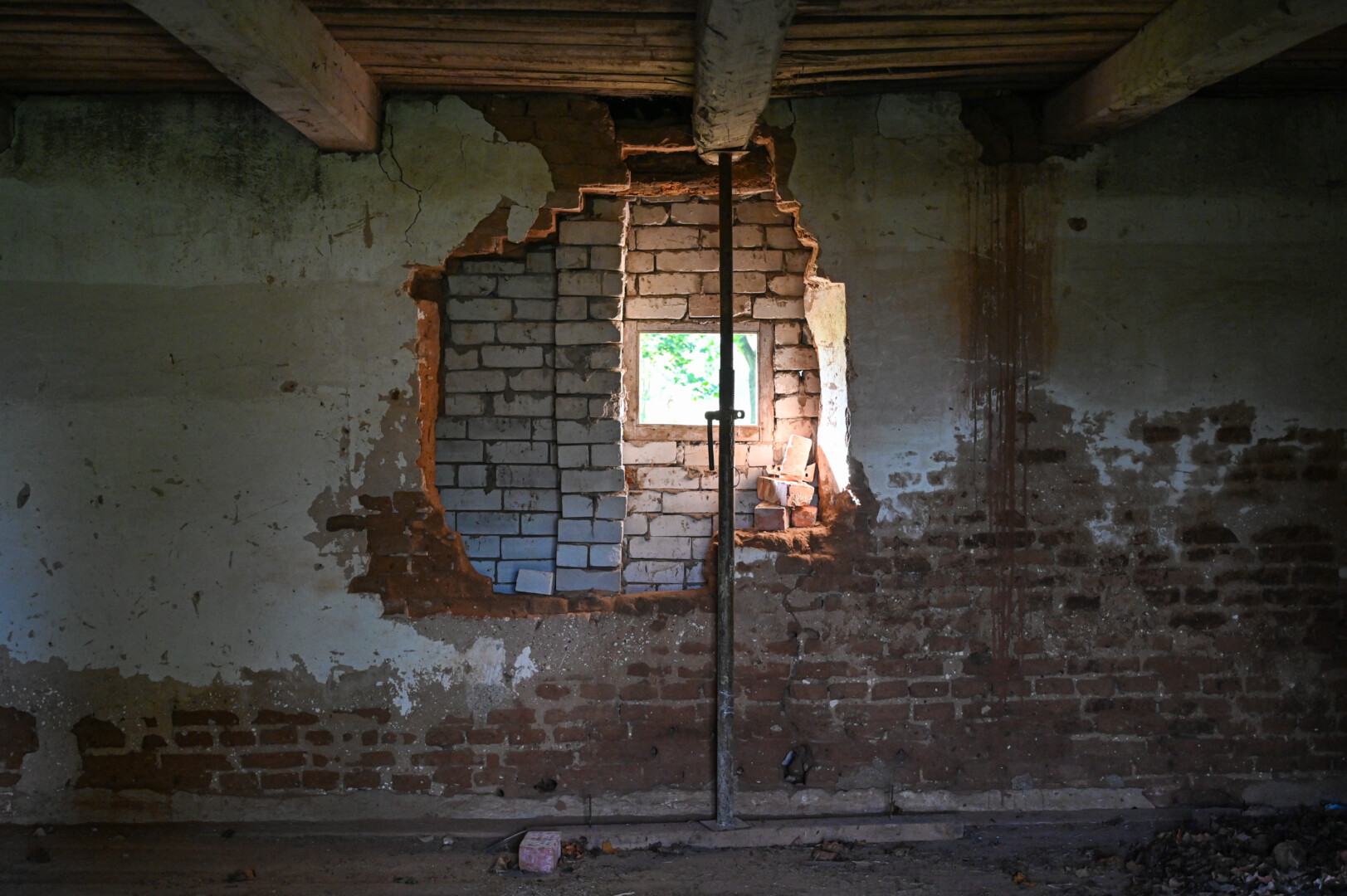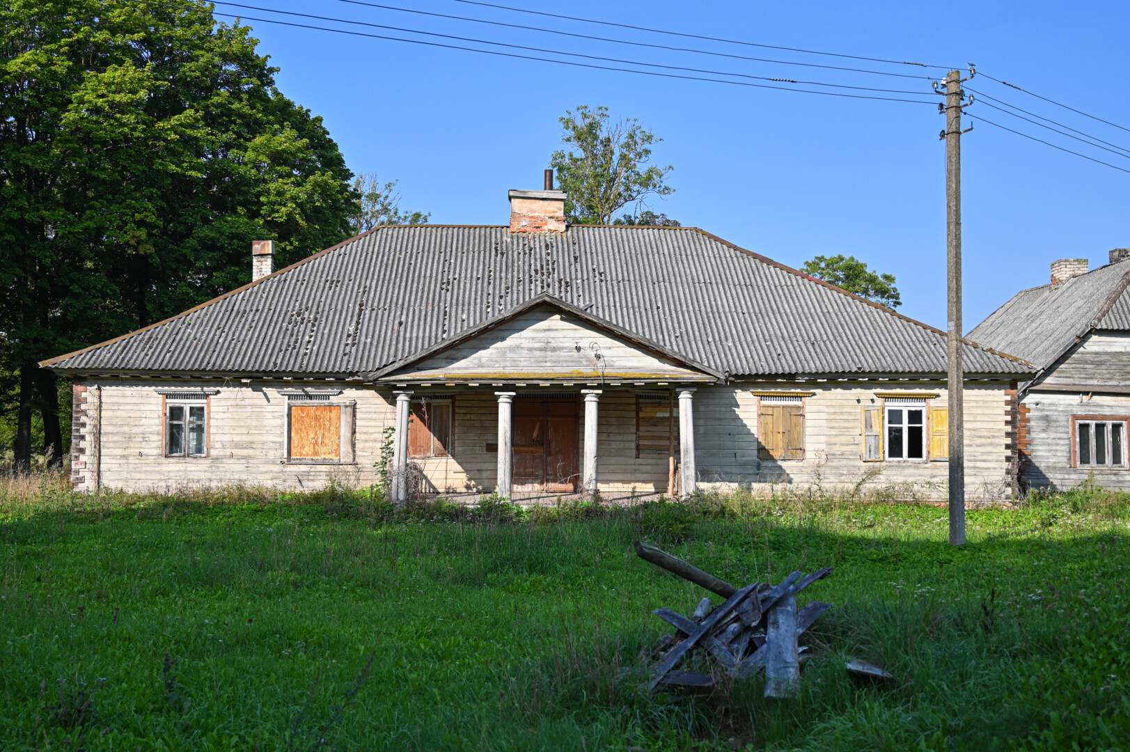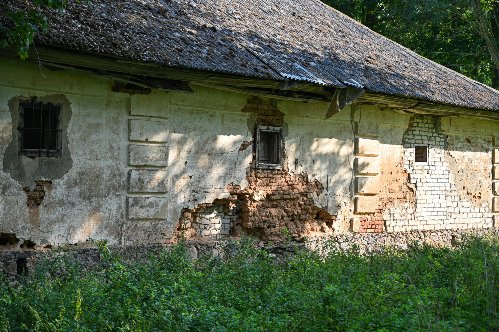 Dalis rūmų langų išdaužyti, dalis – užkalti. Ant kai kurių išlikusios žaliuzės.
