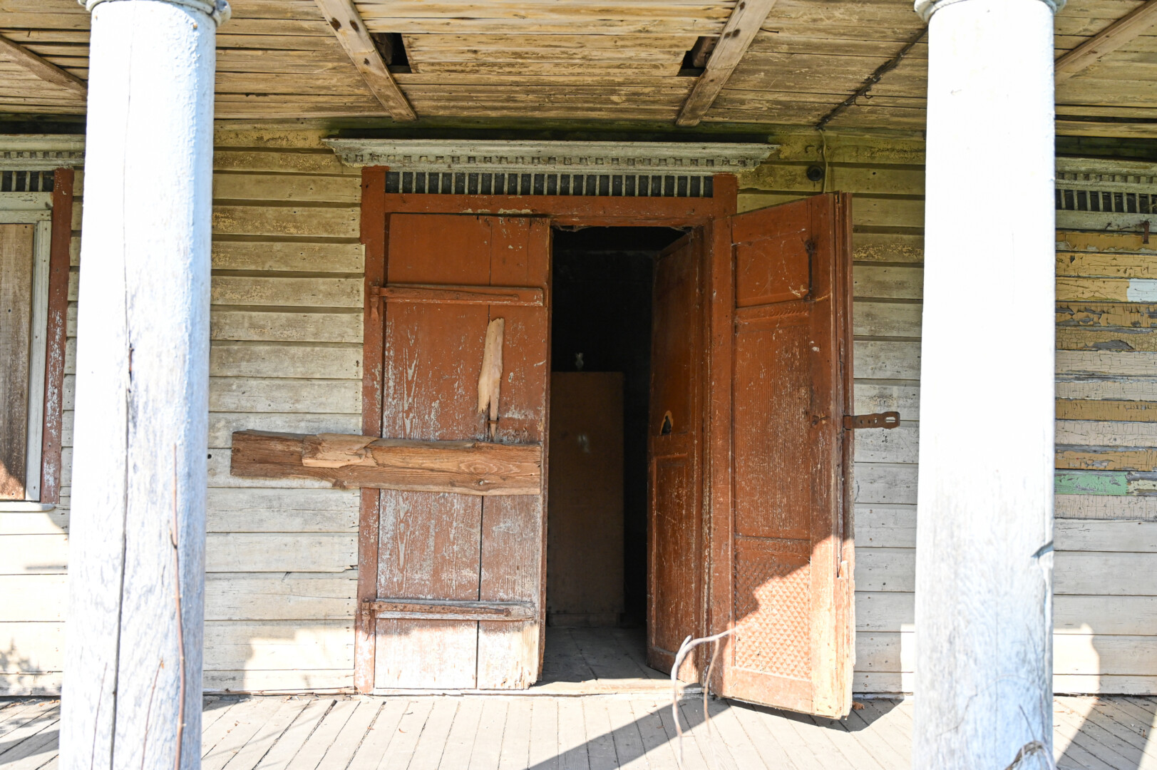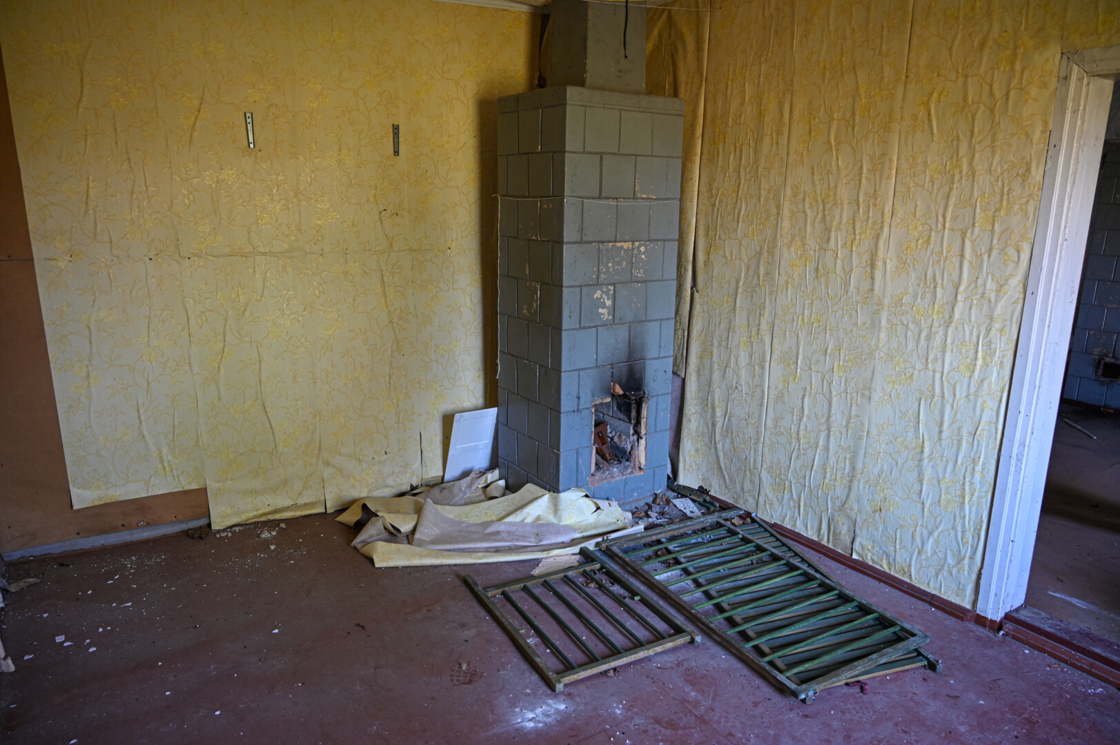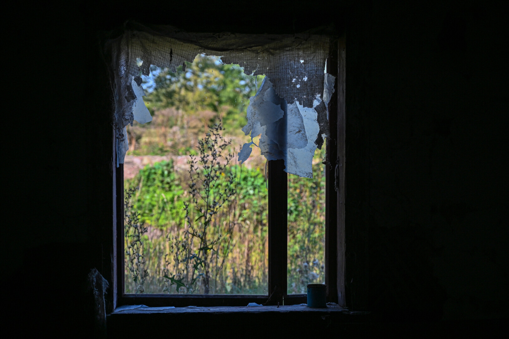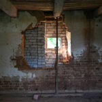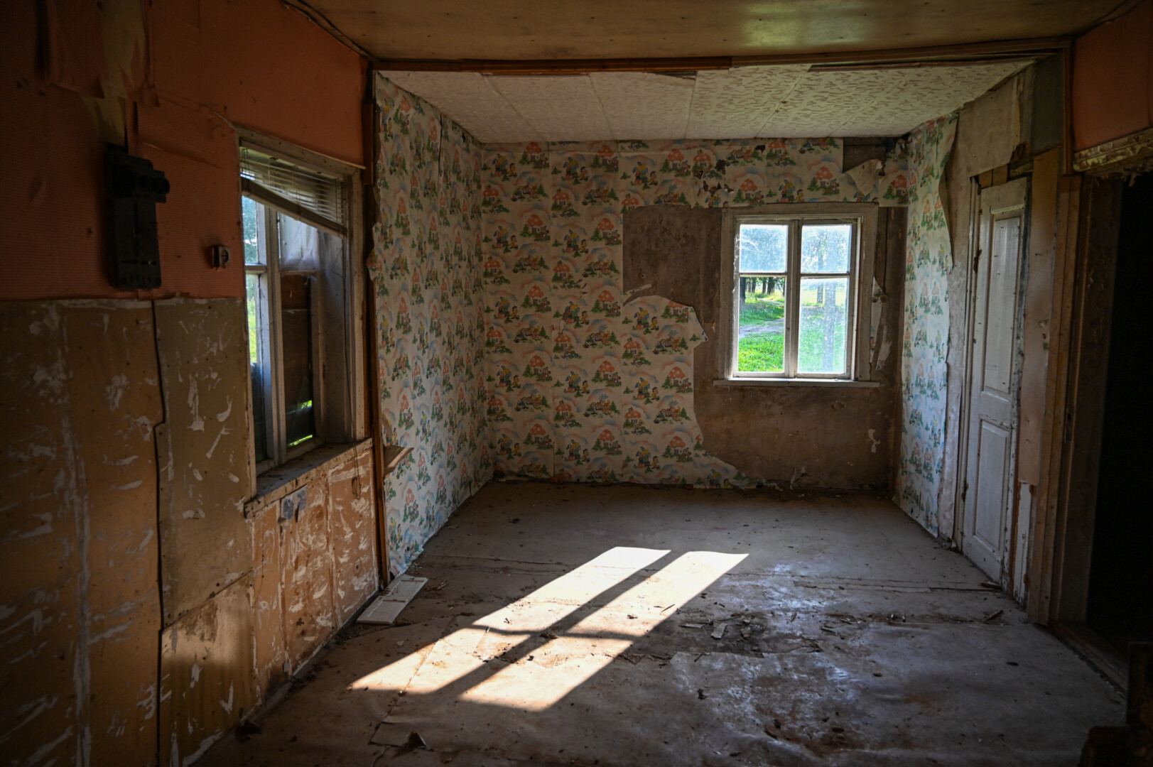 Dalis rūmų langų išdaužyti, dalis – užkalti. Ant kai kurių išlikusios žaliuzės.