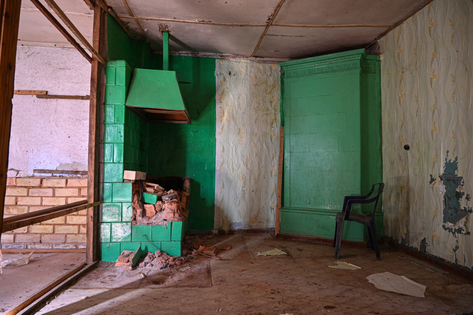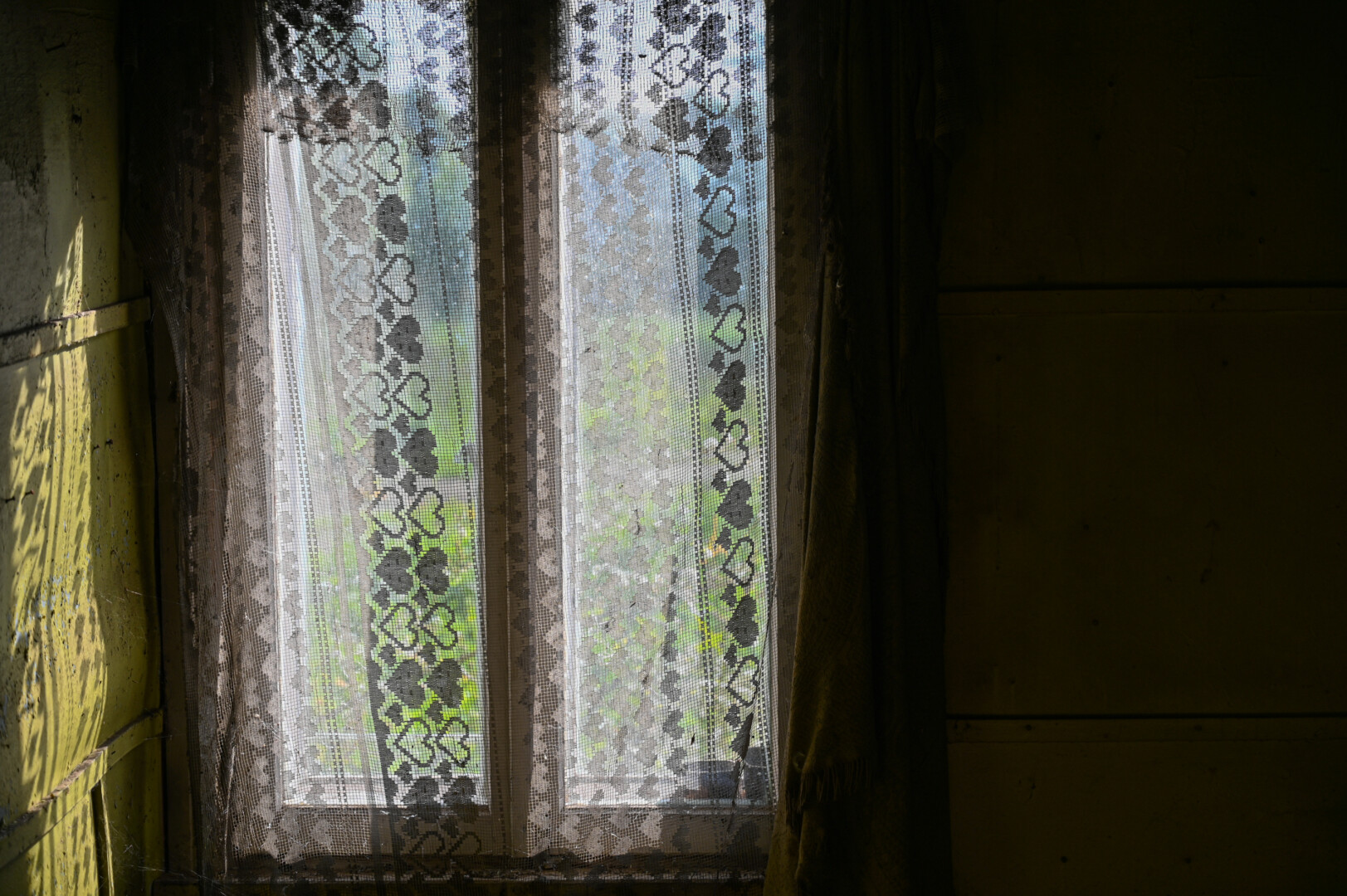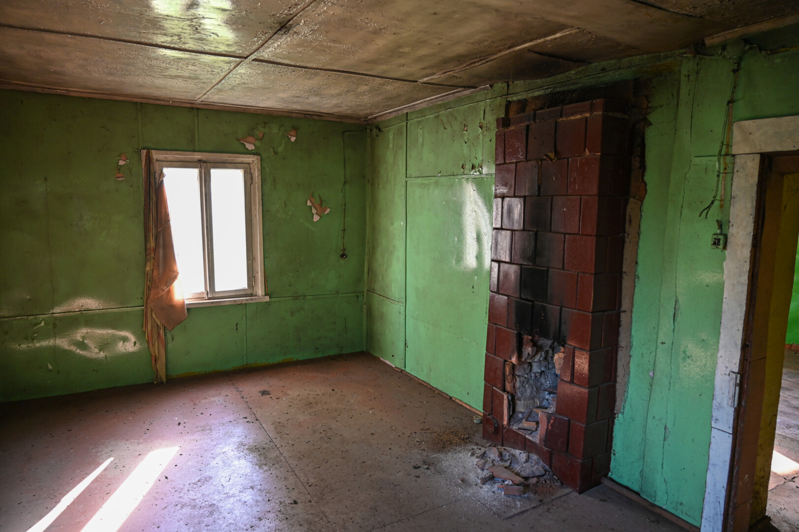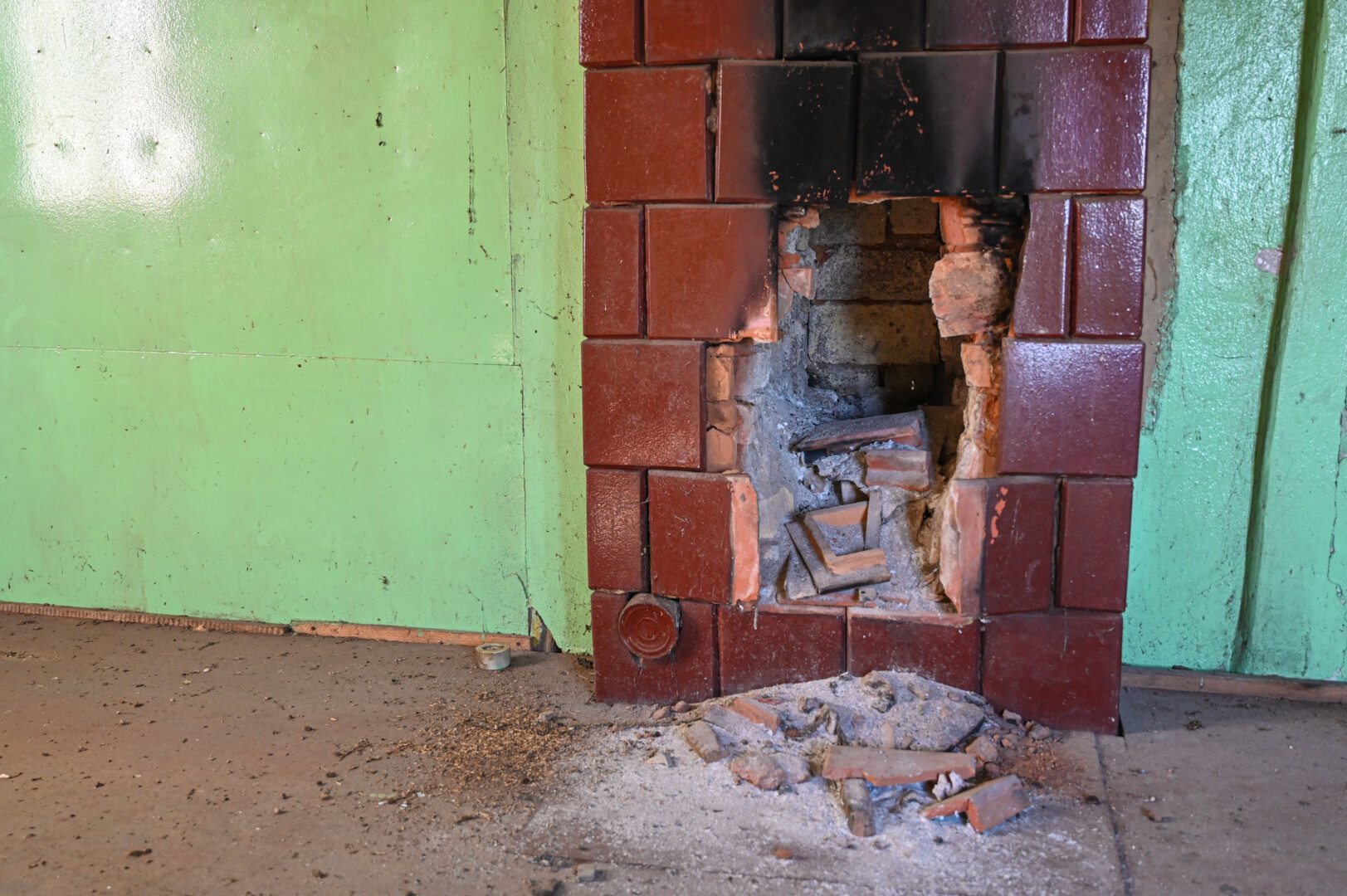 Dalis rūmų langų išdaužyti, dalis – užkalti. Ant kai kurių išlikusios žaliuzės.