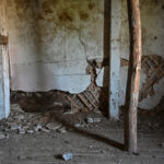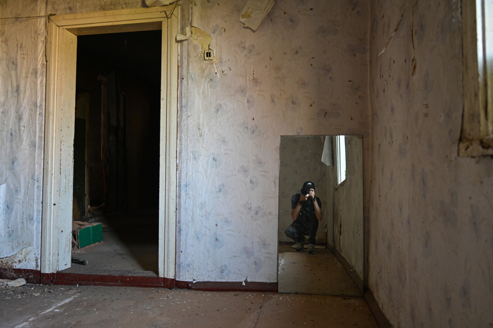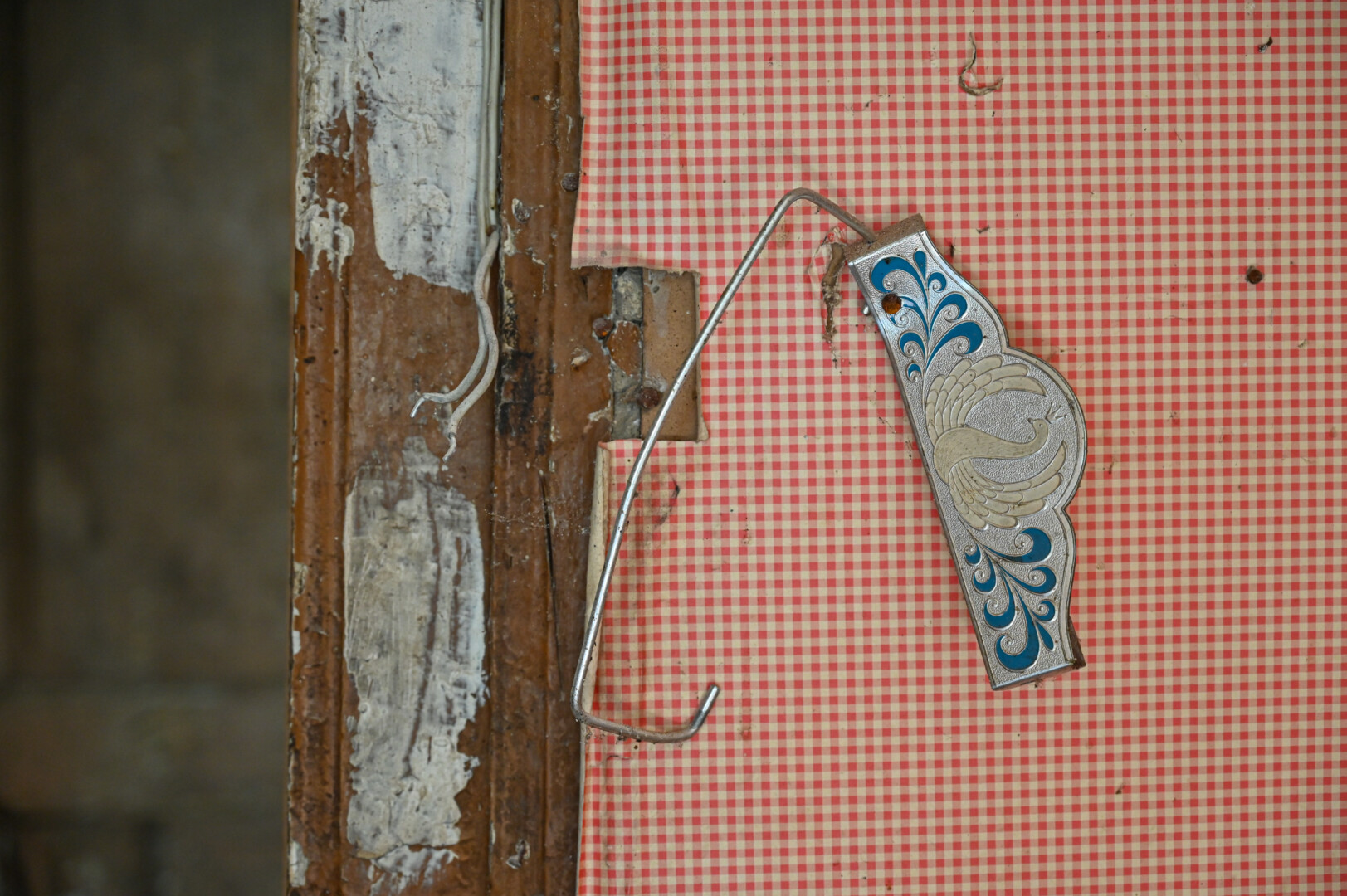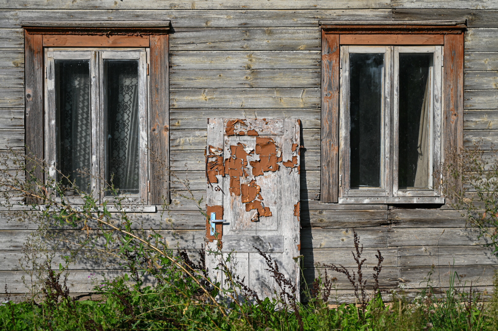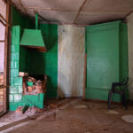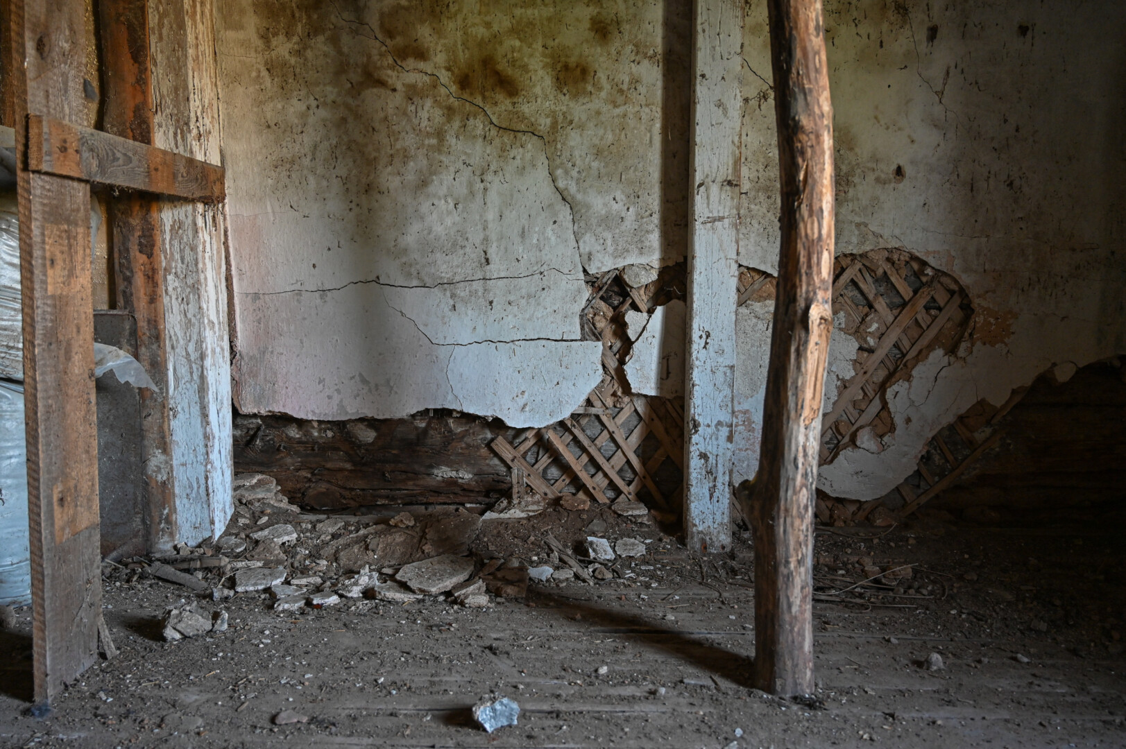 Dalis rūmų langų išdaužyti, dalis – užkalti. Ant kai kurių išlikusios žaliuzės.