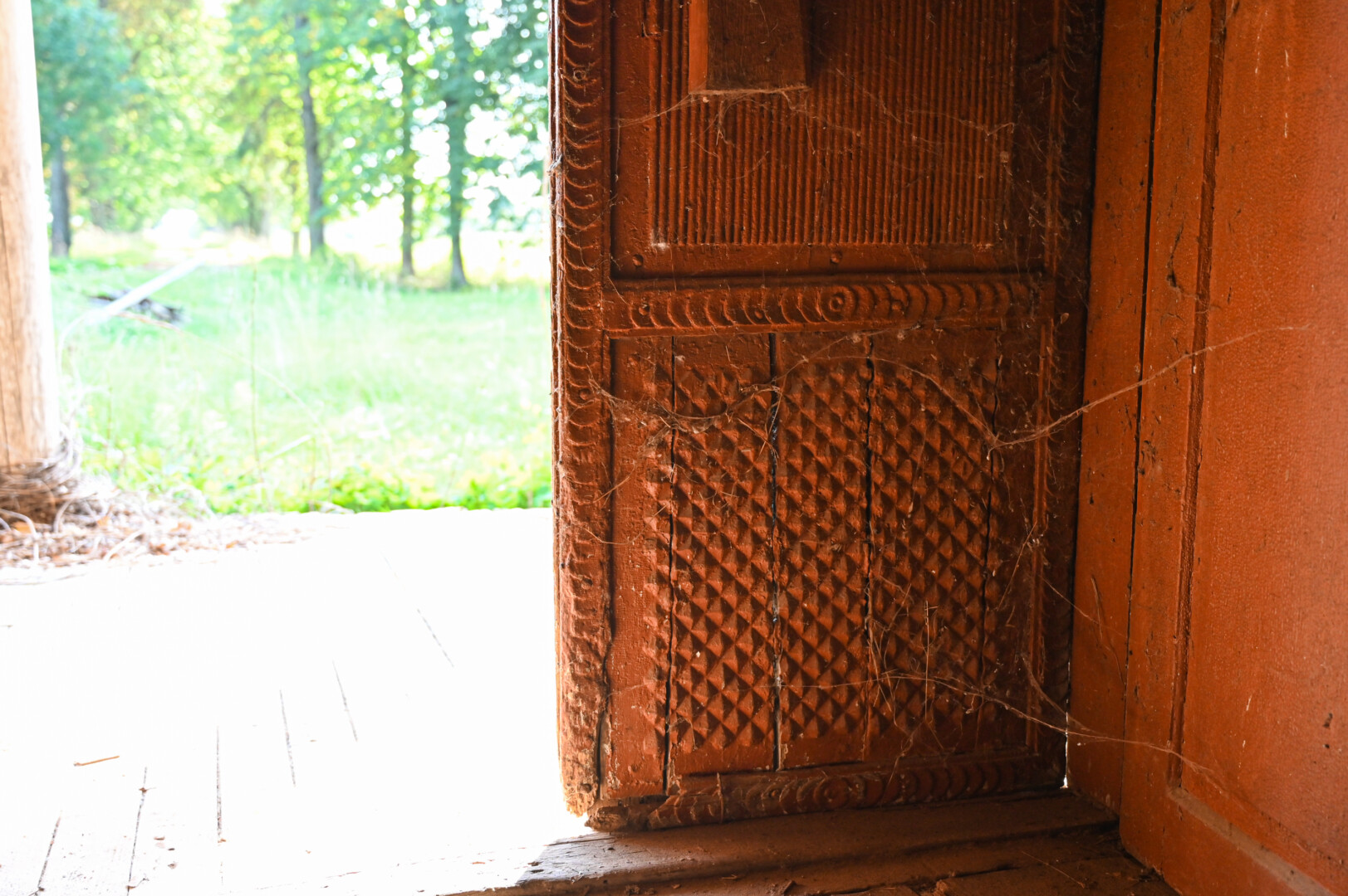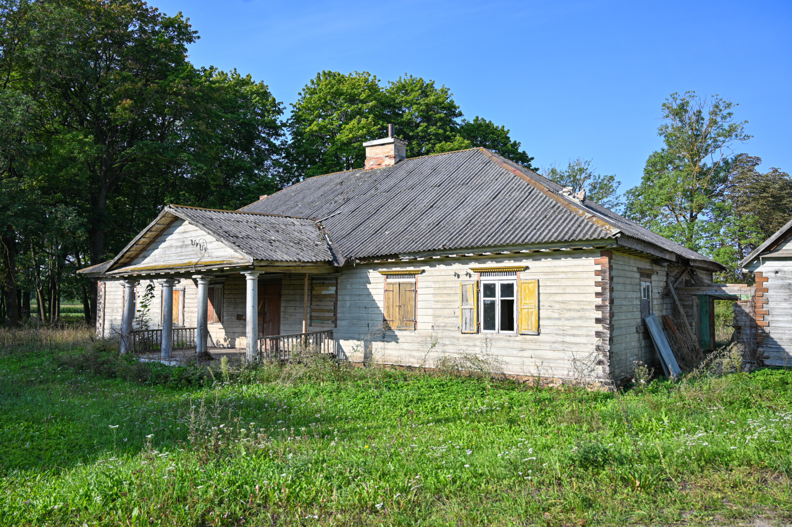 Pasukus medžių alėja link dvarvietės, atsiveria įspūdingos ponų namo kolonos, įdomiais išraitymais puošti langų apvadai.