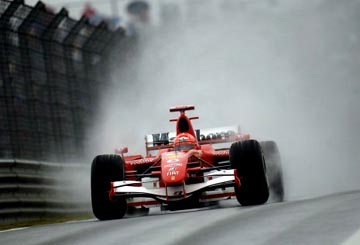 Kai buvo nuvažiuoti 39 ratai, matydami, kad lenktynininkai, kurių bolidų padangos skirtos važiuoti esant sausam orui, pasiekia didesnį greitį, „Ferrari“ komandos mechanikai pasikvietė ir M.Schumacherį. Kitame rate jo pavyzdžiu pasekė ir lenktynėse pirmavęs G.Fisichella. Po savo sustojimo italas grįžo į trasą anksčiau už vokietį, tačiau pirmame posūkyje nesuvaldė bolido, jis išslydo iš lenktyninės trajektorijos. Tuo puikiai pasinaudojo patyręs M.Schumacheris ir išsiveržė į lenktynių lyderius. Aplenkęs savo varžovą vokietis per kelis ratus nutolo nuo savo priešininko.