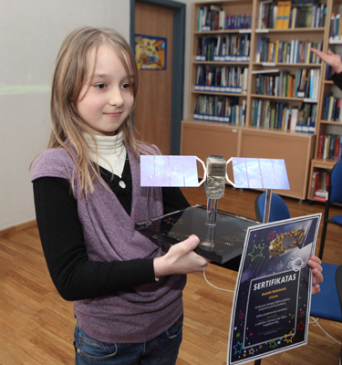 Danielės piešinį “Raudonosios kometos elektros srovė” nacionalinė komisija išrinko geriausiu. Kiekvienos iš 27 Europos Sąjungos šalių narių konkurso nugalėtojo (-os) vardas bus suteiktas į kosmosą paleidžiamam vienam “Galileo” programos palydovui.