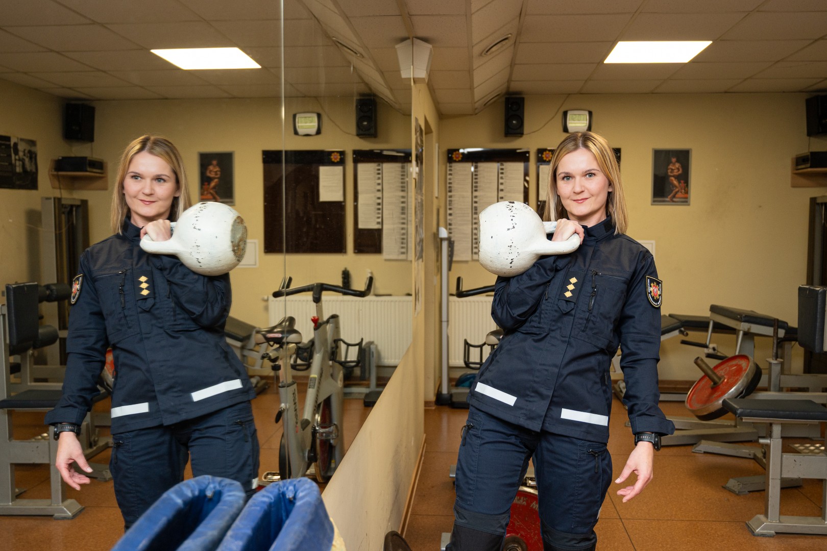 Kai Panevėžio priešgaisrinės gelbėjimo valdybos vyriausioji specialistė Gintarė Gruodė pirmą kartą paėmė į rankas aštuonių kilogramų svarmenį, vos nenugriuvo.