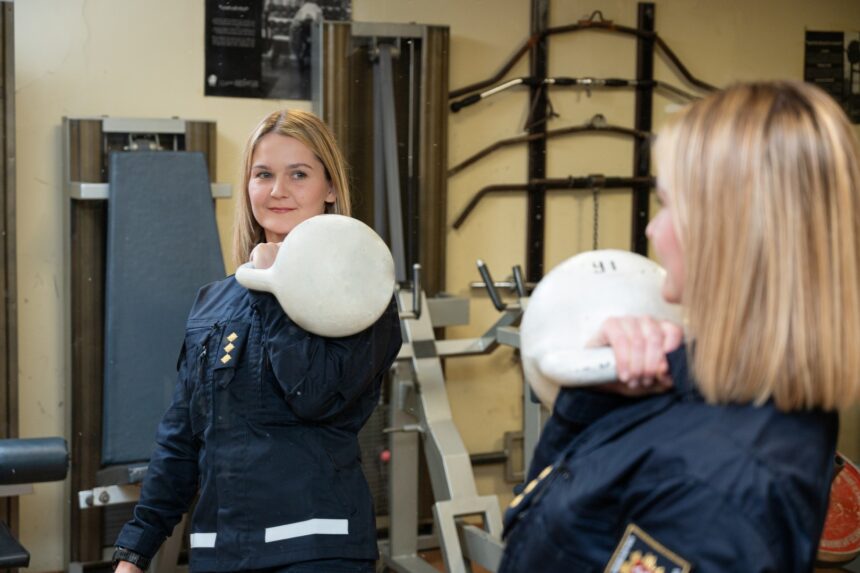 Svarsčių kilnojimas ir trapus moteriškumas – iš pirmo žvilgsnio du nesuderinami dalykai, bet ne Panevėžio priešgaisrinės gelbėjimo valdybos Civilinės saugos skyriaus vyriausiajai specialistei Gintarei Gruodei.