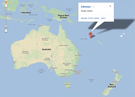 Programoje “Goole Earth” sala, pažymėta pavadinimu “Sandy Island”, yra pusiaukelėje tarp Australijos ir Naujosios Kaledonijos, kuri priklauso Prancūzijai. Tačiau Sidnėjaus universiteto mokslininkai nuvyko į tą vietą ir nerado jokios salos. Ši sala žemėlapiuose buvo žymima mažiausiai 10 metų.