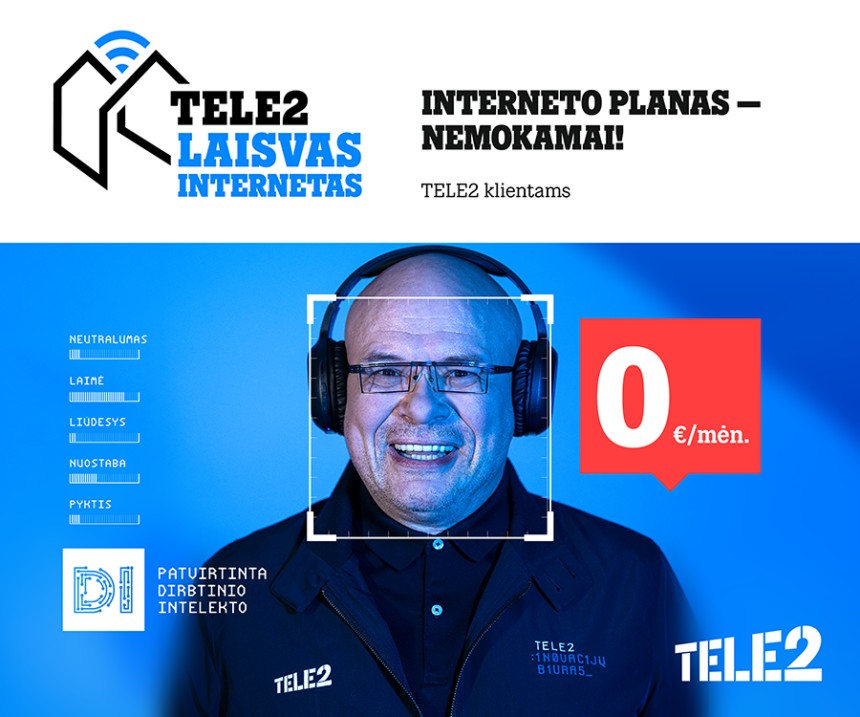 Įspūdingoms sporto varžyboms, kokybiškam kinui ir įdomioms laidoms – išmanūs televizoriai vos nuo 2 Eur/mėn. Pasiūlymas galioja užsakant įrangą su „Tele2 Laisvo interneto“ planu „Neriboti GB“ (18,90 Eur/mėn.) ir 24 mėn. sutartimi. Pradinė įmoka – 1 Eur.