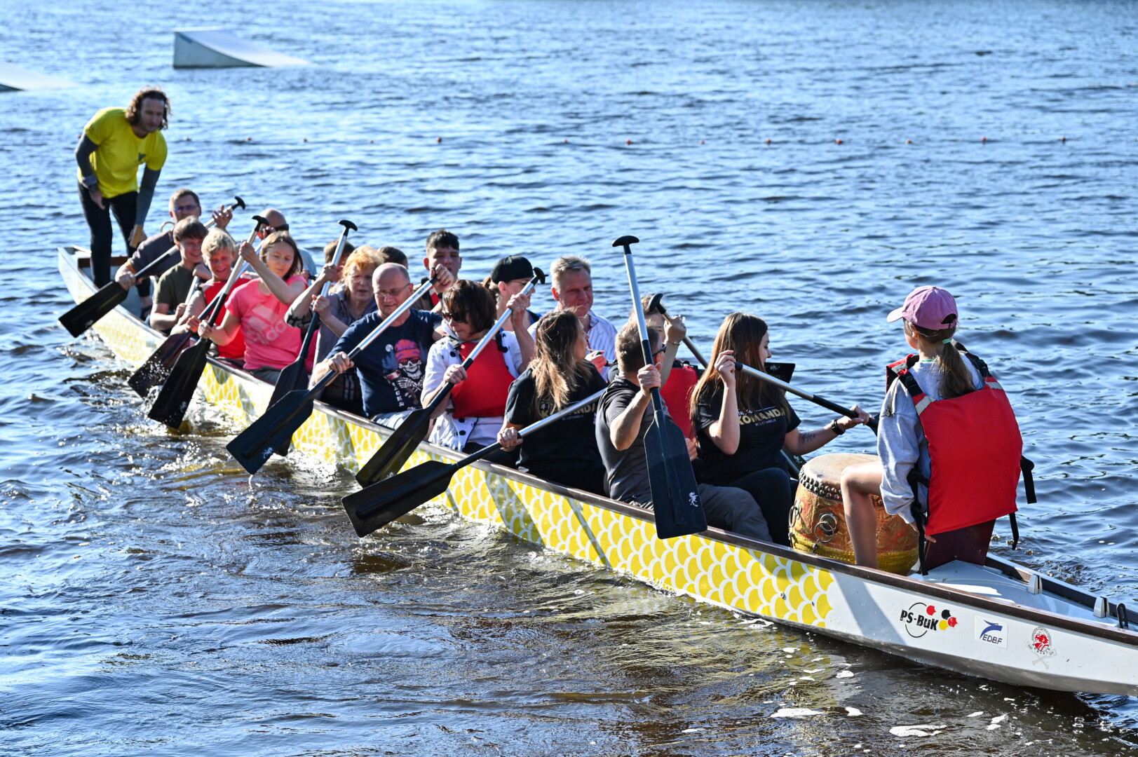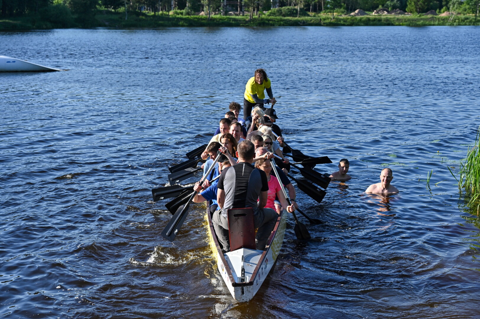 Tradiciškai į valtį susėda dvi dešimtys irkluotojų, vairininkas ir būgnininkas. Paprastai vairininkas būna labiausiai patyręs ir nebijantis prisiimti atsakomybės komandos narys, o būgnininko misija – motyvuoti ir uždegti komandą: mušdamas būgną, jis padeda irkluotojams suderinti irklų mostus.