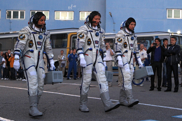 Rusijos kosmoso agentūros “Roskosmos” atstovas sakė, kad kapsulė su įgulos nariais orbitą pasiekė praėjus mažiau nei 10 minučių po pakilimo. Kapsulėje skrenda rusai Genadijus Padalkas ir Sergejus Revinas bei NASA astronautas Džo Akabas (Joe Acaba). Ketvirtadienį jie turėtų pasiekti TKS.