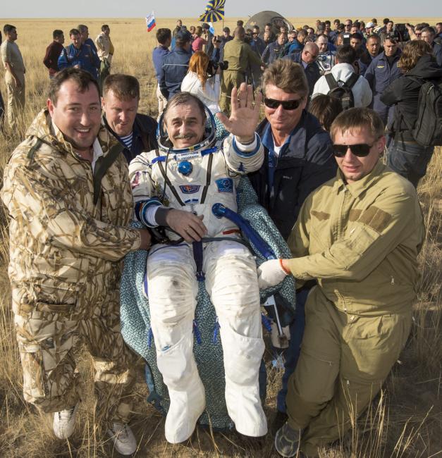 JAV kosmoso agentūros (NASA) astronautas Krisas Kasidis (Chris Cassidy) ir rusai Pavelas Vinogradovas bei Aleksandras Misurkinas sėkmingai nusileido Kazachstane. Astronautai į TKS pakilo iš Baikonūro kosmodromo kovo 29 dieną.