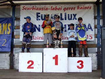 65 kub. cm klasėje (vaikai iki 13 metų) prie starto linijos stojo ir mūsiškis 12-metis Klaudijus Žiukas. Pirmajame važiavime panevėžietis užėmė trečią vietą. Antrajame važiavime Klaudijus nuolat lipo ant kulnų savo varžovui klaipėdiečiui Saimonui Vespenderiui, kuris važiavo antroje pozicijoje, tačiau nepavyko jo aplenkti ir finišo liniją panevėžietis kirto vėl trečias. Susumavus abiejų važiavimų rezultatus, Klaudijus surinko 40 taškų ir tenkinosi trečia vieta. Pirmą vietą šioje klasėje iškovojo kaunietis Regimantas Visockis iš VMK, sidabro medaliu pasidabino S.Vespenderis.