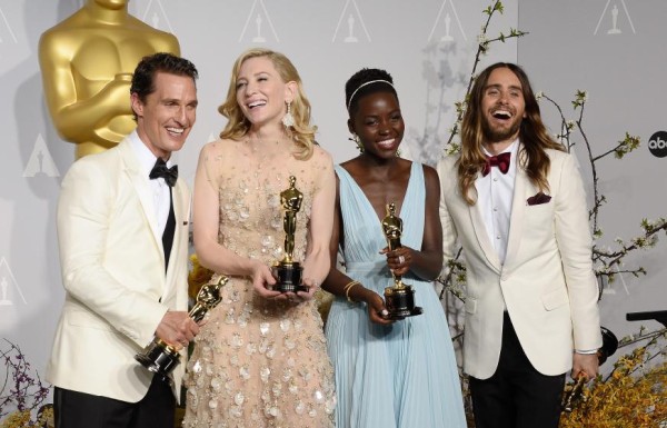 Nuotr. iš kairės į dešinę M. Makonagis, geriausia aktorė Keit Blanšet ('Džesmina'), geriausia antraplanė aktorė Lupita Niango ('12 vergovės metų') ir geriausias antraplanis aktorius Džaretas Leto ('Dalaso klubas').