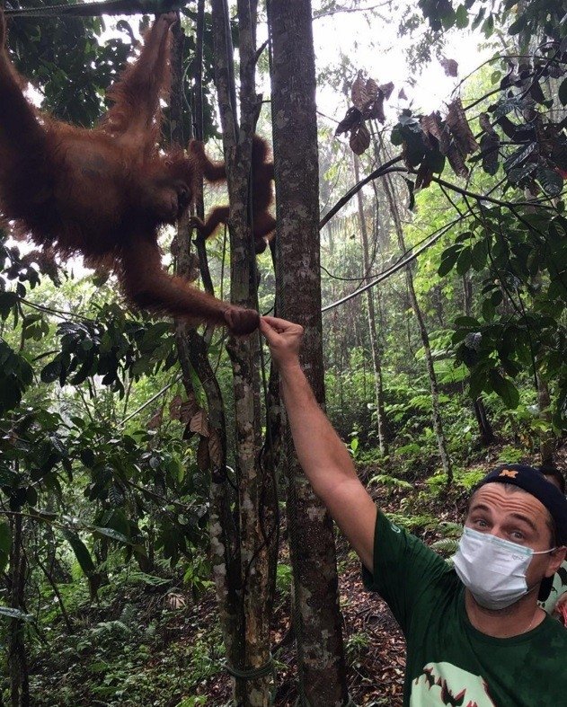 Daugybę laukinės gamtos nuotraukų socialiniuose tinkluose viešinantis aktorius daugiausia sėkmės sulaukė įsiamžindamas su orangutanu. „Čia, Sumatrano orangutanų karantino centre, orangutanai gelbėjami ir globojami tol, kol juos vėl bus galima paleisti į laisvę. Nelikite abejingi ir paaukokite šiems gyvūnams“, – prie nuotraukos rašė L. Dikaprijus. Internautai ne tik išliaupsino šią Leonardo nuotrauką, bet ir nepagailėjo šimtų tūkstančių paspaudimų „patinka“. Beje, šmaikštesni komentatoriai nepagailėjo komplimentų ir orangutanui, kuris jiems pasirodė gražesnis už pasaulinę garsenybę. Beje, L. Dikaprijus socialiniuose tinkluose retai dalijasi savo nuotraukomis, dar rečiau – asmenukėmis. Aktorius, kuris pastaruoju metu, rodos, visa galva paniręs į klimato atšilimo bei kitas pasaulines problemas, socialiniuose tinkluose skleidžia žinią, kaip kiekvienas galėtų prisidėti prie to, kad mūsų pasaulis būtų švaresnis ir gražesnis. Net atsiimdamas „Oskarą“ už filmą „Hju Glaso legenda“ Leonardas rėžė kalbą apie tai, su kokiais sunkumais susidūrė kūrybinė komanda, kai filmavimo scenoms prireikė sniego. Anot jo, „klimato kaita yra reali, ji vyksta kaip tik šiuo metu, tai yra viena didžiausių grėsmių, kuri šiuo metu grasina visai mūsų rūšiai ir mes turime dirbti išvien ir pagaliau liautis delsę“.