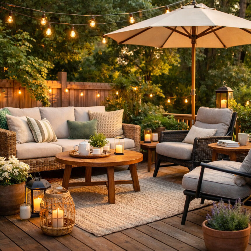 - Pridėti lauko pagalvėlių ar antklodžių – vasarą lengvesnių, iš orui atsparių audinių.