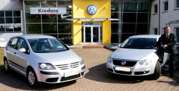 Vakar UAB “Kredora” direktorius Dainius Melaika ir vadybininkas Arnoldas Kadūnas pristatė 2 naujus automobilius: naujo dizaino “Volkswagen Passat” ir “Metų automobilio” “Volkswagen Golf” brolį – “Volkswagen Golf Plus”.