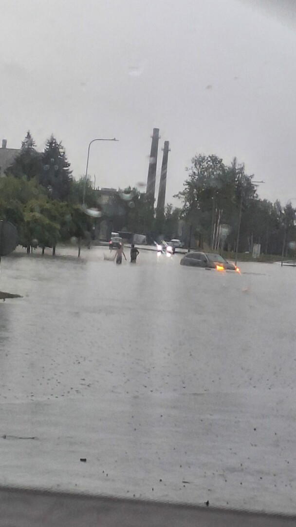 „Automatikos sistemų“ įmonės įvaža, visa gatvė ties ja buvo virtusi neišvažiuojamu liūnu. Vienas automobilis stovėjo vandenyje užgesęs, aplink, pasiraitojęs kelnes, braidė vairuotojas“, – pasakojo Asta.