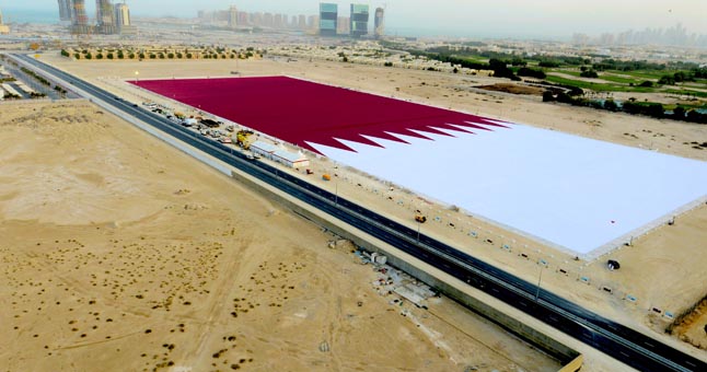 Katare išskleistos vėliavos dydis – 101 000 kvadratinių metrų. Vėliava trečiadienį parodyta Dohoje šalies nacionalinės šventės proga. Gineso rekordų knygos atstovai patvirtino, kad tai didžiausia vėliava Žemės rutulyje.
