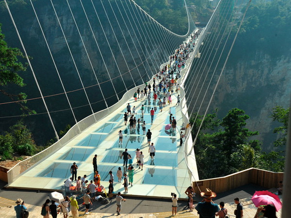 Maždaug 430 m ilgio kabantis tiltas, esantis 300 m aukštyje virš žemės, jungia skirtingose tarpeklio pusėse esančias uolas Džangdziadzijės parke Kinijos centrinėje Hunano provincijoje.