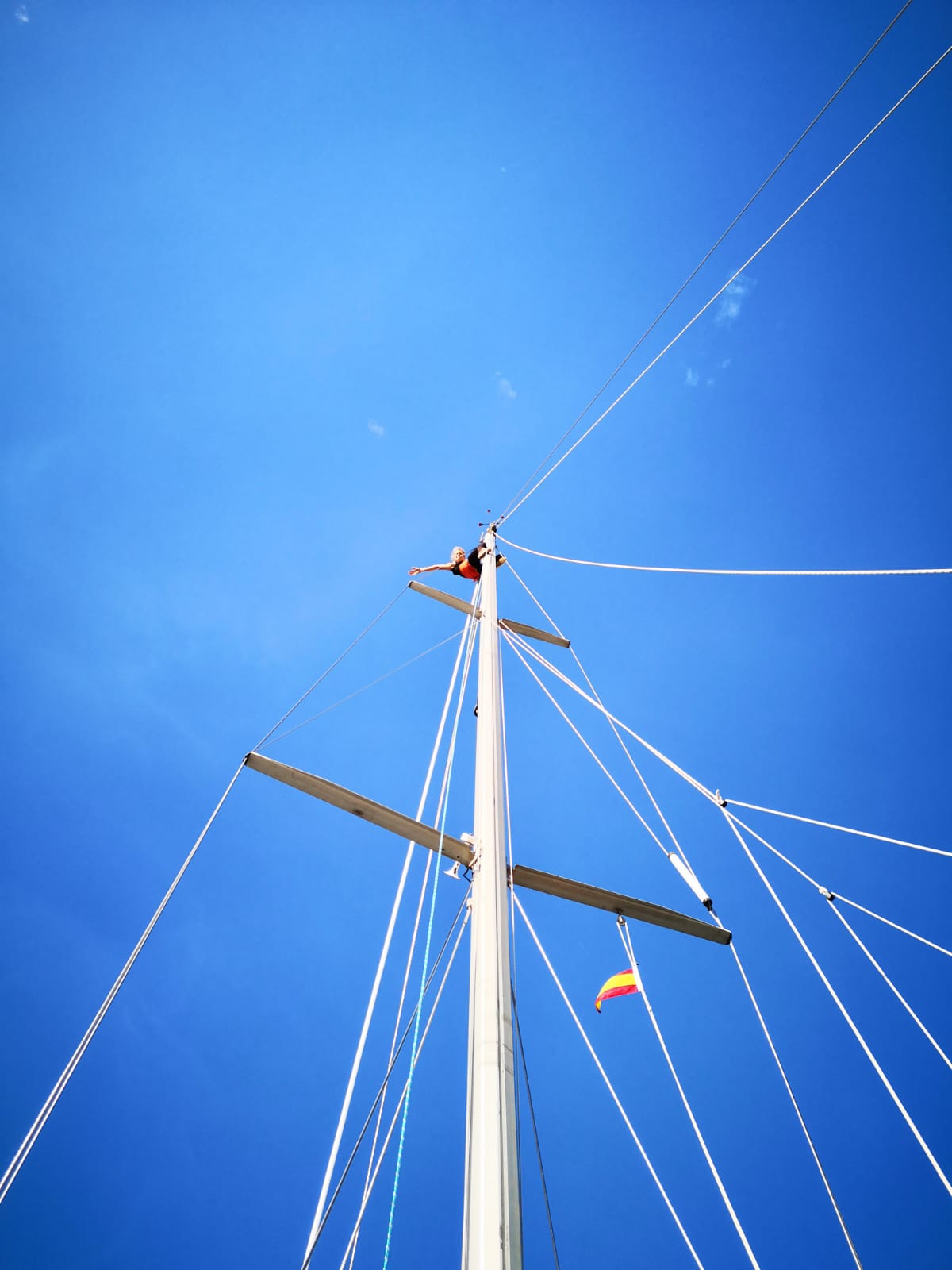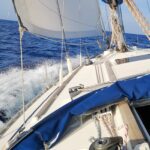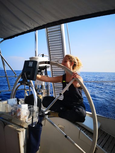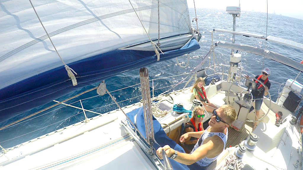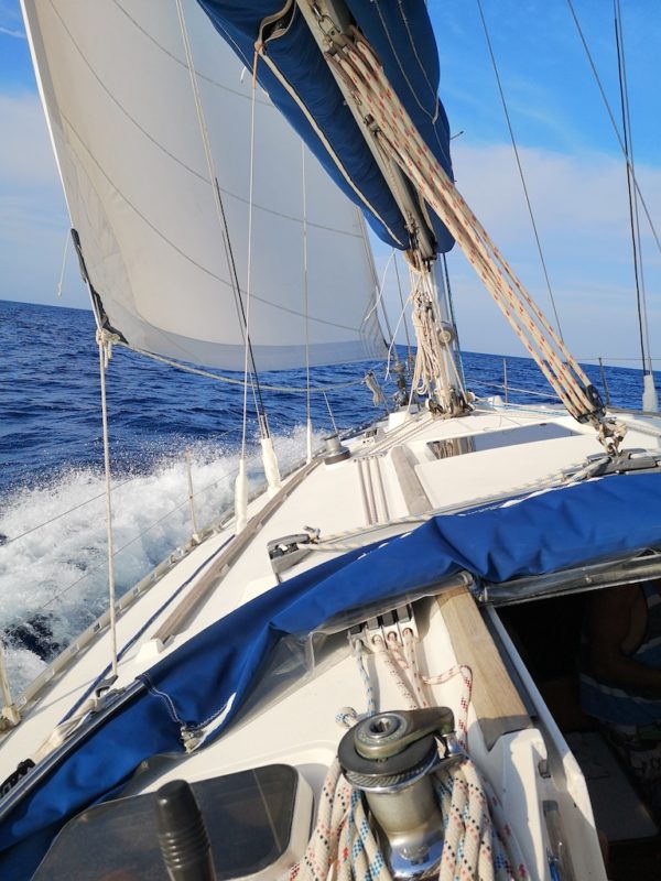 „Šaukiu Simą, kad jis stotų prie vairo, nes man geriau sekasi su denio darbais, nei vairuoti. Jis bando stotis prie vairo, o aš šliaužioju stengdamasi, kad skraidančios ir denį plakančios virvės nenuplaktų ir manęs, – juokiasi Vita. – Pasileidžiam pavėjui ir pabangiui, atsisėdame visame tame jovale, išorėje šlapi nuo bangų ir nuo situacijos sušilę iš vidaus. Bet viskas gerai – kitas kartas jau buvo sklandesnis: maždaug per valandą susitvarkėme visą jovalėlį ir jau pasikėlėme bures.“