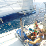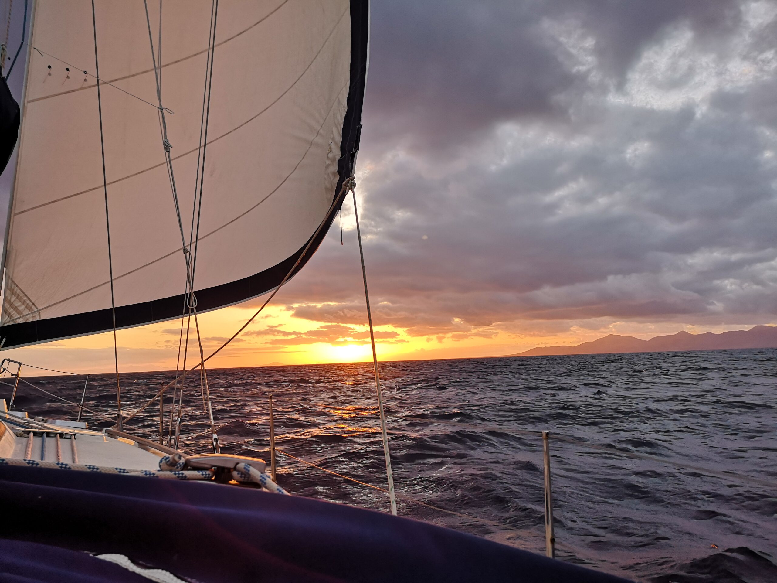 Vėjo greitis tąkart pakilo iki aštuoniolikos mazgų. Visgi pora save ramino, jog čia nieko baisaus, viskas pagal planą, bet kai pradėjo mažinti bures, nuotykiai ir grumtynės su siaučiančiais gūsiais tik prasidėjo.
