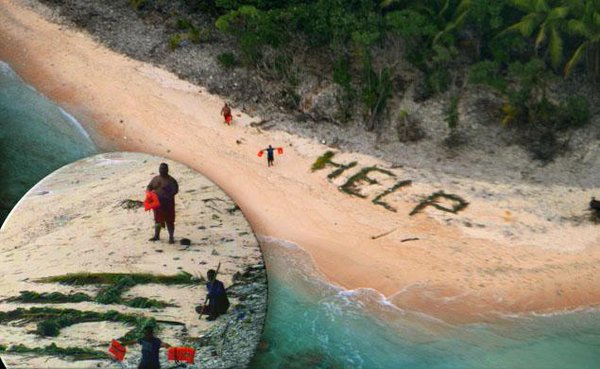 Trys vyrai 3 dienas galėjo įsijausti į garsiojo Robinzono Kruzo dalią, nes jie buvo įkalinti atokioje ir negyvenamoje Ramiojo vandenyno saloje. O iš jos ištrūko tik iš palmių lapų ant smėlio sudėlioto žodžio „Help“ (ang. Gelbėkit) dėka.