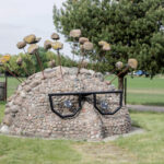 Tokia meninė instaliacija turėtų prašalaičius įspėti, kad kieme gyvena piktas šuo.