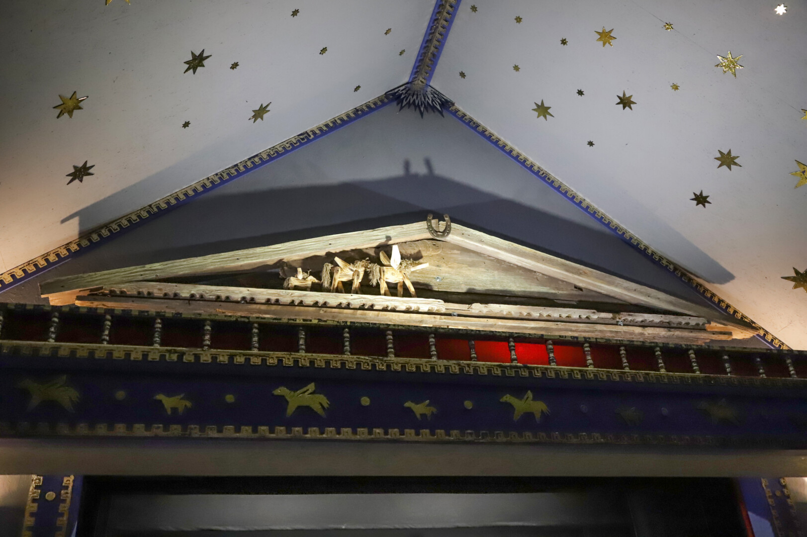 Garbingiausioje vietoje, virš scenos, akys užkliūva už senų lentų dekoracijos. Menininkui tos senos lentos turi neįkainojamą, net sakralinę prasmę.