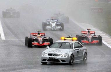 Sportininkams išsirikiavus paskui saugos automobilį, rikiuotės priekyje vėl važiavo L.Hamiltonas, jam įkandin sekė M.Webberis, S.Vettelis, V.Liuzzi, H.Kovalainenas, F.Massa, D.Coulthardas ir G.Fisichella.
