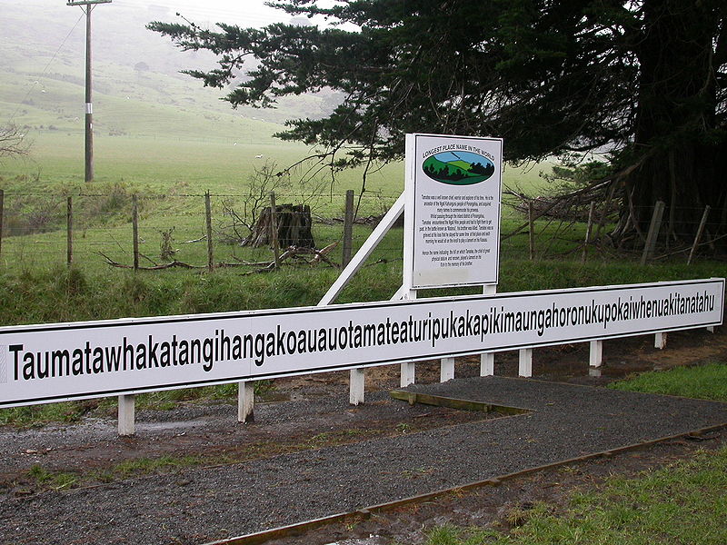 Bet ir tai dar ne ilgiausias žodis. Naujosios Zelandijos šiaurinėje saloje stūkso 300 m kalva, kurios pavadinimą originalo kalba sudaro 92 raidės: Taumata- whakatangihangakoauauotamateaturipukakapikimaungahoronukupokaiwhenuakitanatahu. Tai yra „Vieta, kurioje Tamatėja – žmogus ilgomis blauzdomis, garsusis kalnų rijikas, stumdęs kalnus, kopęs į juos ir juos rijęs, grojęs fleita savo mylimajai“. Ką čia daugiau bepridursi… Nebent kad vietos gyventojai sutrumpintai vadina šią vietą Taumatos kalva.