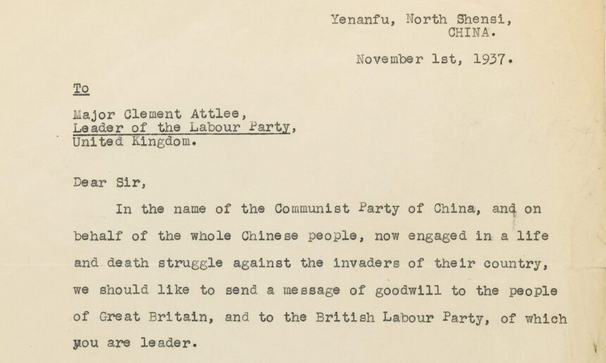 Laiškas, datuojamas 1937 metų lapkričio 1 d., buvo parašytas anglų kalba ir pasirašytas paties Mao kinų revoliucionierių bazėje Šensi provincijoje. Jame buvo raginama padėti kinų tautai kovoje su japonų militaristais, kėlusiais Didžiosios Britanijos žmonėms nė kiek ne mažesnį pavojų.