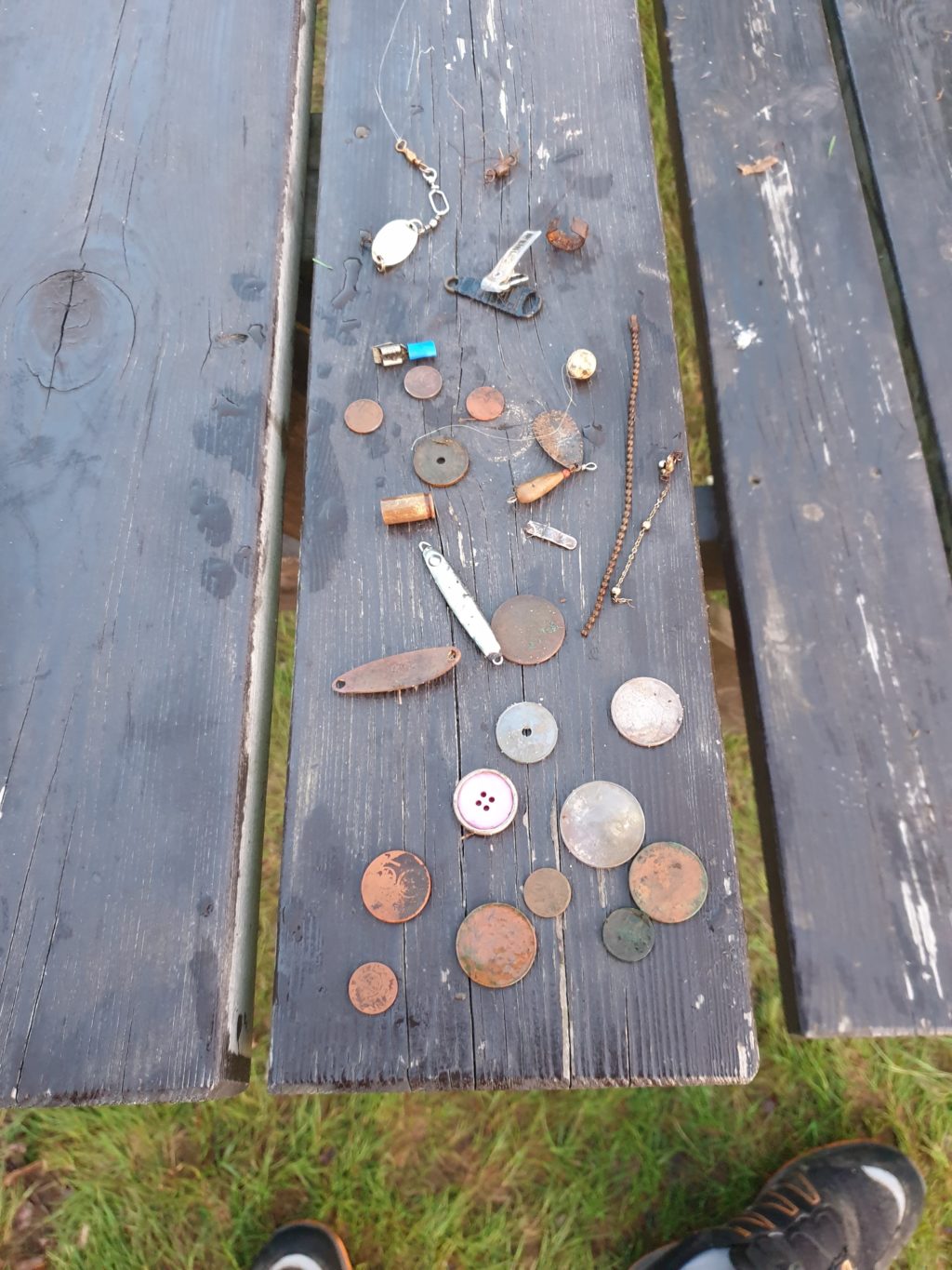 „Pirmas išėjimas ir paieškų rezultatas – krūvelė vinių. Antras išėjimas – jau ir pirma monetėlė, norvegiška krona. Trečias išėjimas – jau trys monetos. Šaunu!“ – prisimena.
