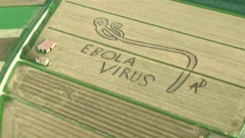 Italų landšafto dailininkas Darijus Gambarinas „nupiešė“ Ebolos hemoraginės karštinės simbolį lauke traktoriumi, praneša „The Evening Telegraph“.