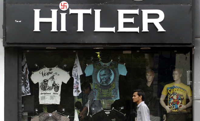 Parduotuvė “Hitleris” praėjusį mėnesį atvėrė duris Ahmedabade, didžiausiame Gudžarato valstijos mieste. Ji siūlo vakarietiškus drabužius vyrams. Virš parduotuvės kabo iškaba “Hitleris”, o taškas ant raidės i pavaizduotas kaip svastika.