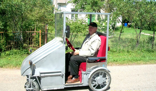 Nagingas meistras, mokantis apsieiti su elektra, gabus suvirintojas, santechnikas ir traktorininkas, elektromobilį sukonstravo iš savo mirusios žmonos elektra varomų invalido ratelių, rašo Joniškio rajono laikraštis „Sidabrė“. Rateliai buvo sugedę ir jokie meistrai negalėjo jų pataisyti.