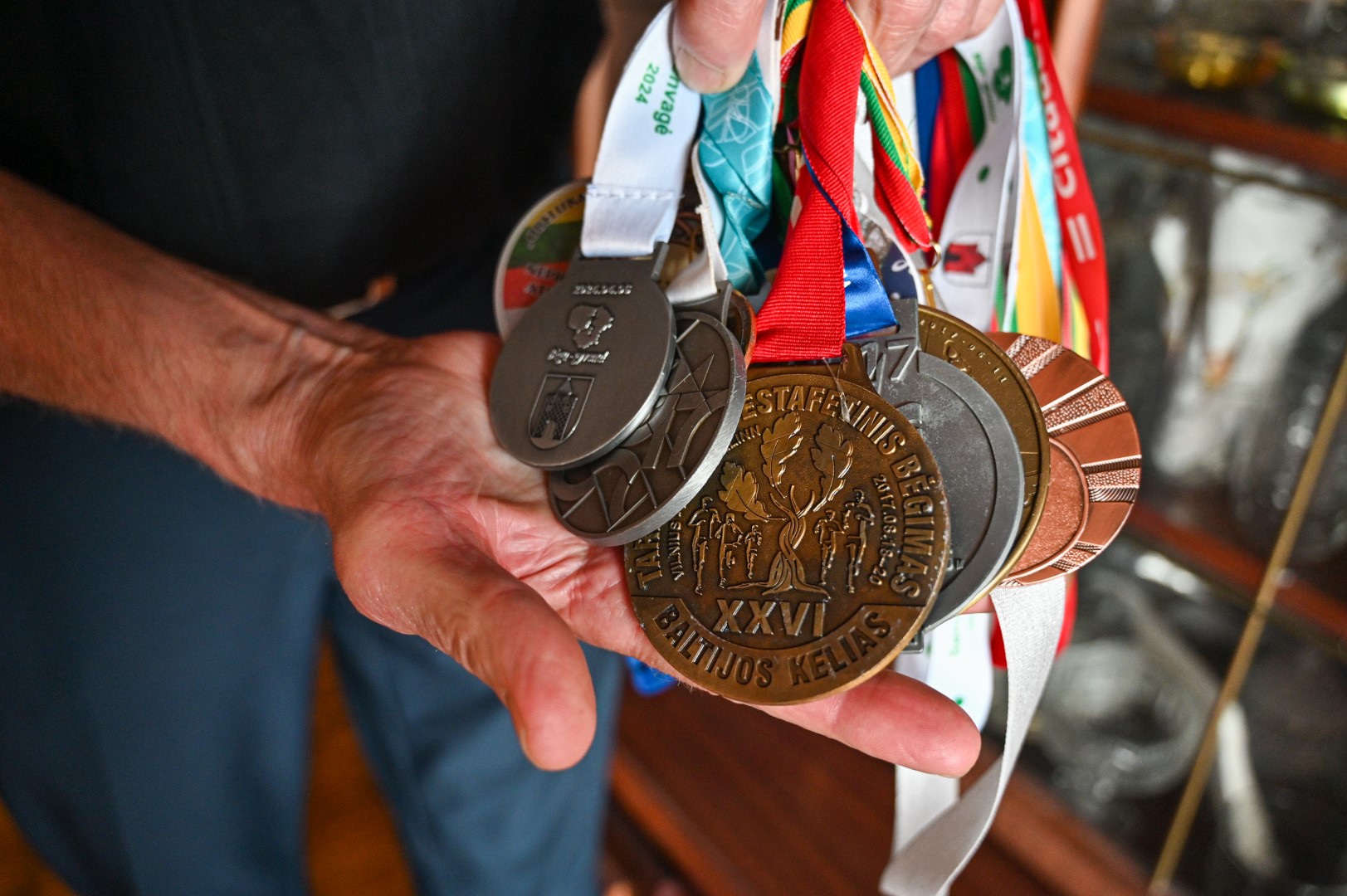 Jo kolekcijoje – per du šimtus medalių. Sykį bandė juos sverti – svarstyklės parodė daugiau nei dešimt kilogramų.