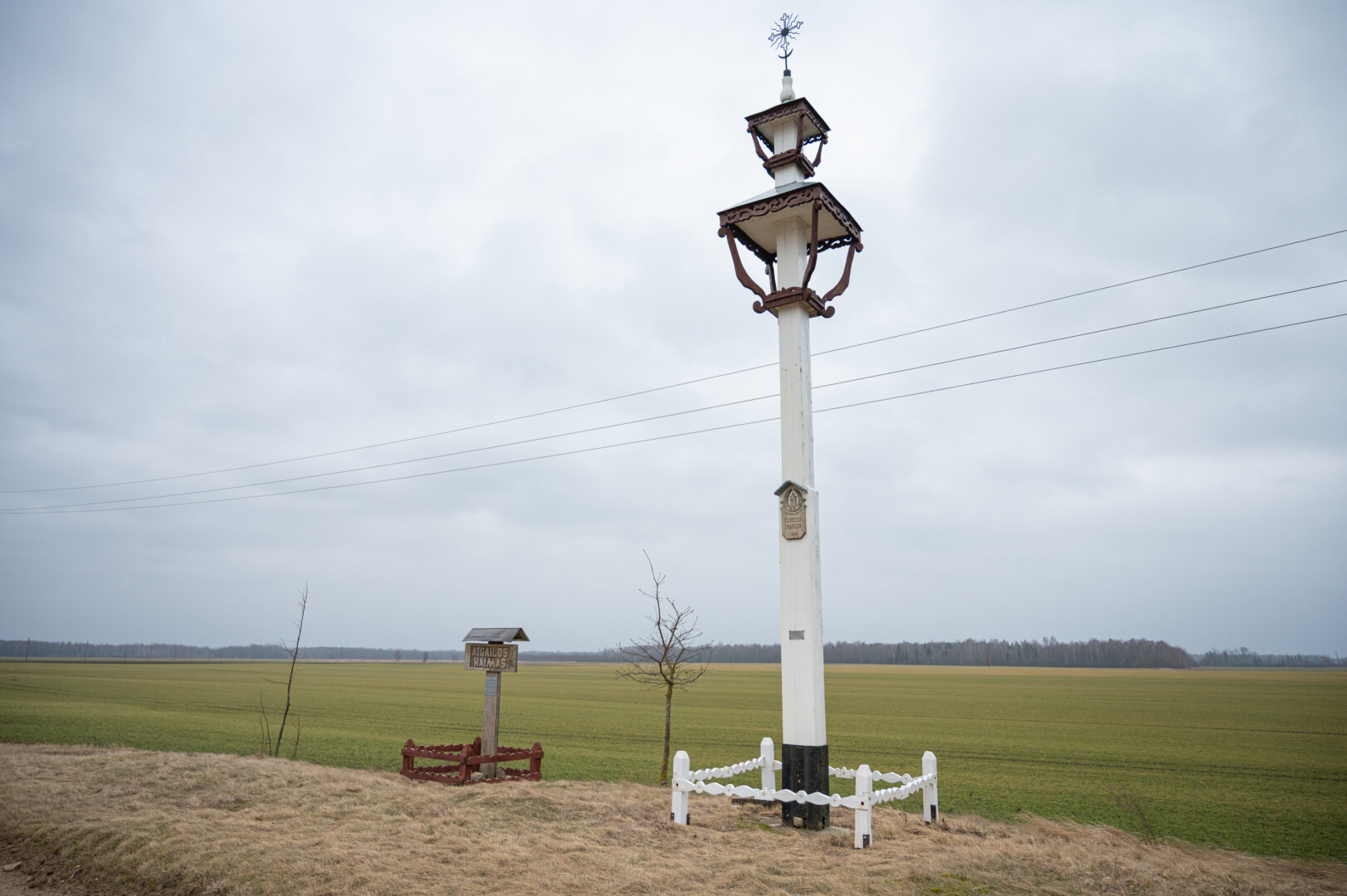 Baltai nudažytas koplytstulpis dabar atrodo visai naujutėlis.